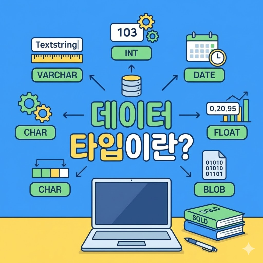 - 테이블 컬럼에 데이터를 넣을 때 “이 칸에는 어떤 종류의 데이터를, 어떤 크기로 저장할지” 정하는 규칙입니다.